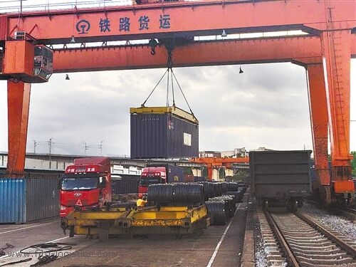 7月6日,由南寧富士康科技公司生產的IT產品搭乘南寧至成都X2814次直達專列,接續中歐班列前往荷蘭鹿特丹。這是南寧乃至廣西首批搭乘中歐班列出口的貨物。該班列的開通,將進一步提振南寧現代物流業,促進東盟與歐洲之間的國際貿易,大大提高以富士康、三星為代表的高科技制造產業的運輸效率。