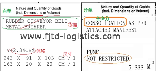 Consol和consolidation意思差不多,都是表示“混載”“拼裝”,一般可以通用。如果一個航空主單(MAWB)對應多個航空分單(HAWB),且貨物種類較多,就會在主運單“貨物描述”(Nature and Quantity of Goods(incl. Dimensions or Volume))那里打上“Consol”字樣。如果一個主運單對應多個分單,但是品名只有一個,可以不打“Consol”字樣,只需要打該貨物的實際品名也可以。