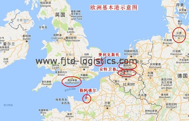 歐洲的基本港主要有6個:荷蘭的Rotterdam鹿特丹;德國的Hamburg漢堡;比利時的Antwerp安特衛(wèi)普;法國的Le Havre勒阿佛爾;和英國的Felixstowe費利克斯托以及Southampton南安普頓。