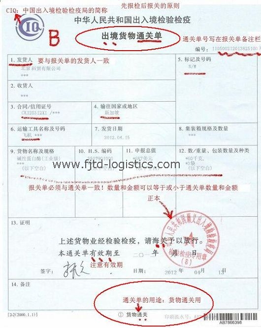 - 北京空運《出口貨物報關單》填報樣單2015-10-27