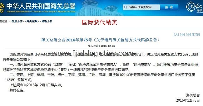 為促進(jìn)跨境貿(mào)易電子商務(wù)進(jìn)出口業(yè)務(wù)發(fā)展,方便企業(yè)通關(guān),規(guī)范海關(guān)管理,實(shí)施海關(guān)統(tǒng)計(jì),決定增列海關(guān)監(jiān)管方式代碼,增列海關(guān)監(jiān)管方式代碼“1239”,全稱(chēng)“保稅跨境貿(mào)易電子商務(wù)A”,簡(jiǎn)稱(chēng) “保稅電商A”。適用于境內(nèi)電子商務(wù)企業(yè)通過(guò)海關(guān)特殊監(jiān)管區(qū)域或保稅物流中心(B型)一線進(jìn)境的跨境電子商務(wù)零售進(jìn)口商品。同時(shí),天津、上海、杭州、寧波、福州、平潭、鄭州、廣州、深圳、重慶等10個(gè)城市開(kāi)展跨境電子商務(wù)零售進(jìn)口業(yè)務(wù)暫不適用“1239”監(jiān)管方式。此規(guī)定自2016年12月1日起實(shí)施。
