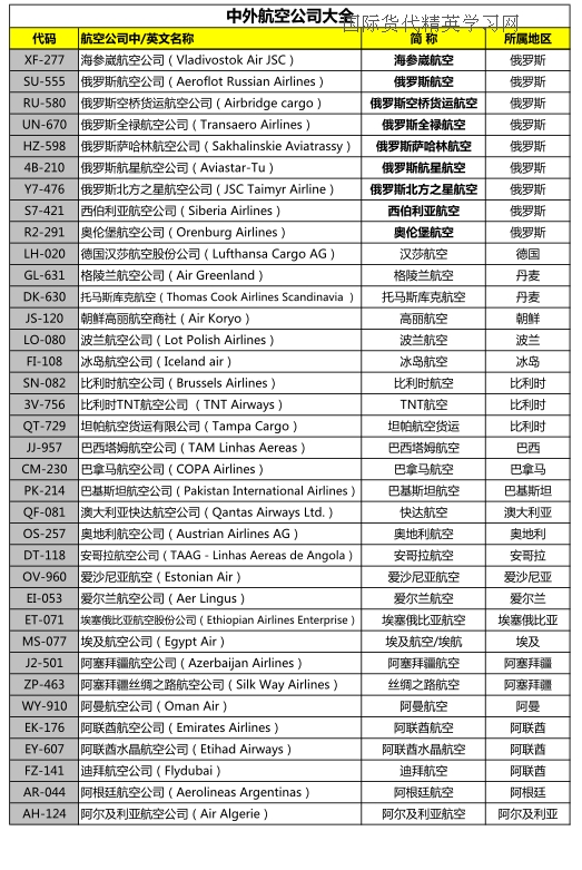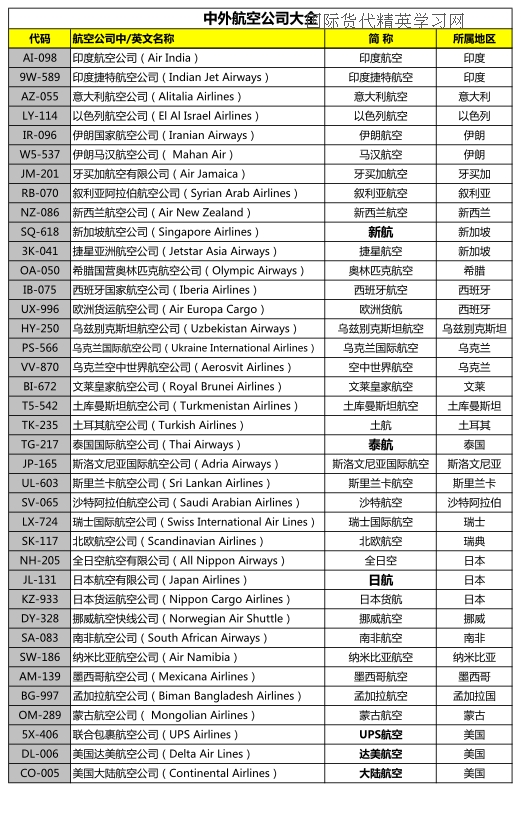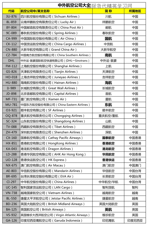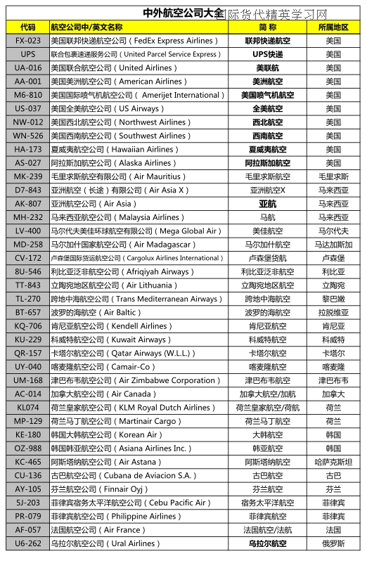IATA代碼等4種常見空運代碼例解(附中外航空公司大全