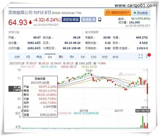 這一公告發布后,美國和英國主要煙草公司的股價暴跌。萬寶路”香煙生產商、煙草巨頭奧馳亞(Altria)集團股價下跌超過9%,英美煙草下跌7.40%。菲利普莫里斯國際公司下跌1.66%。全球最大煙草生產商的市值損失了大約260億美元。