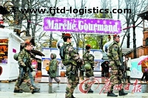 當地時間20115年11月25日,法國巴黎,軍警駐守香榭麗舍大街圣誕市場。巴黎這處原本紅火的圣誕市場,顯得有些冷清。